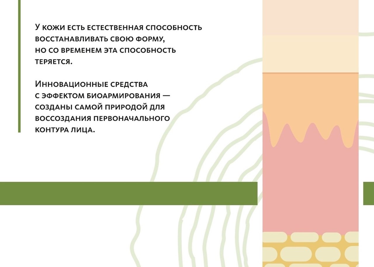Формирование и укрепление природного коллаген-эластинового каркаса, который поддерживает кожу, слегка подтягивая ее от периферии к центру.